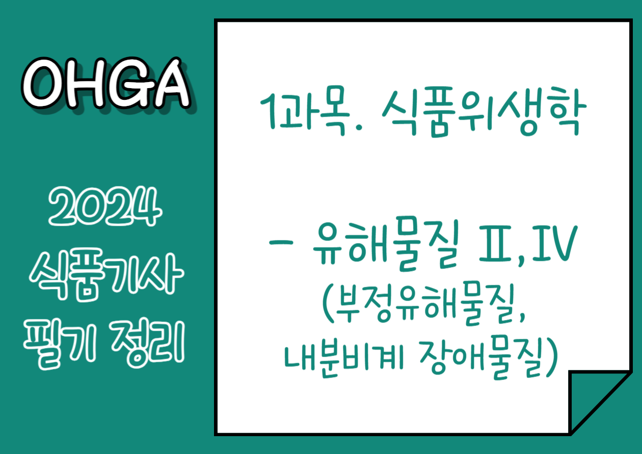오늘은 식품기사 필기 유해물질 관련 기출 중 부정유해물질에 대한 참고자료와 내분비계 장애 물질에 대해 짧게 준비했습니다!